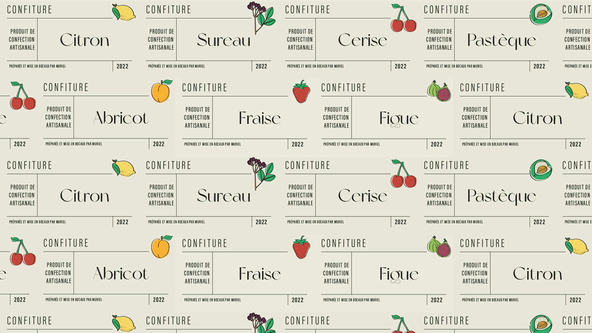 Création d’une série d’illustrations pour des étiquettes de produits de confection artisanale, pour un particulier.